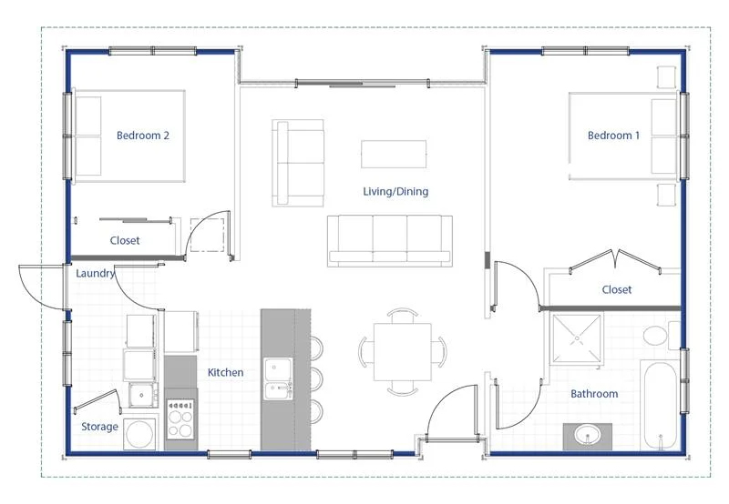 Cleverly designed, the Suffolk uses space efficiently to pack in a whole lot of features. It offers a master bedroom with its own built-in closet, a second double bedroom, and a dedicated laundry room - all connected by a generous central open-plan kitchen and living area.